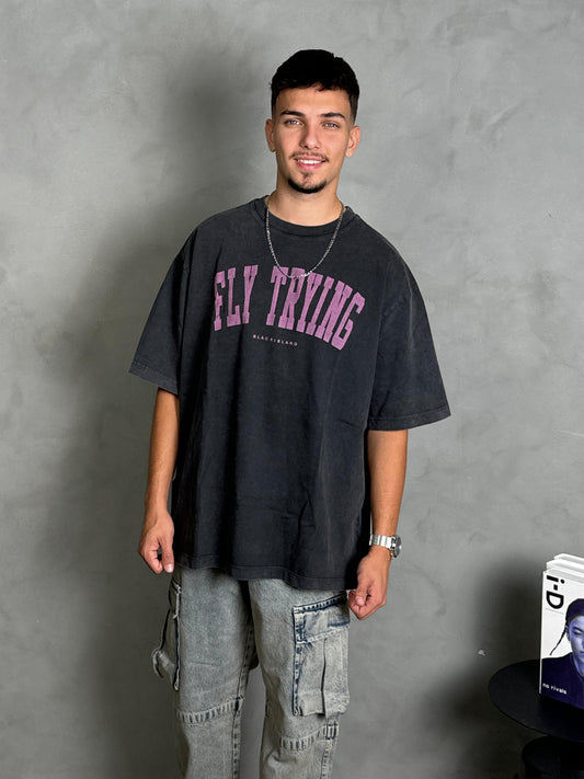 FLY TRYING -חולצה קצרה (אפור כהה)