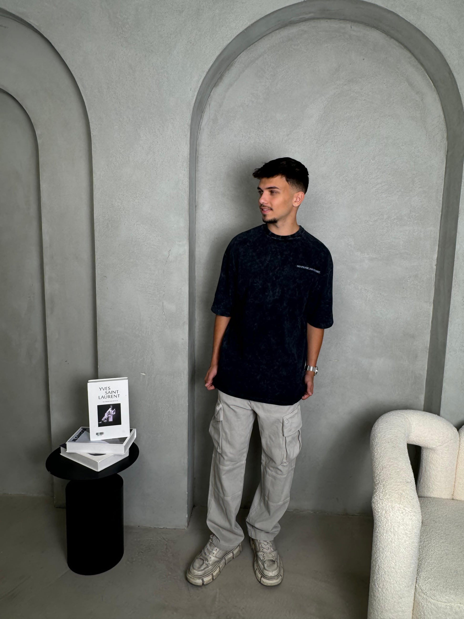 ג'ינס ארוך בגזרת אוברסייז עם כיסים רחבים וסיומת מיוחדת של שרוכים בסוף המכנס