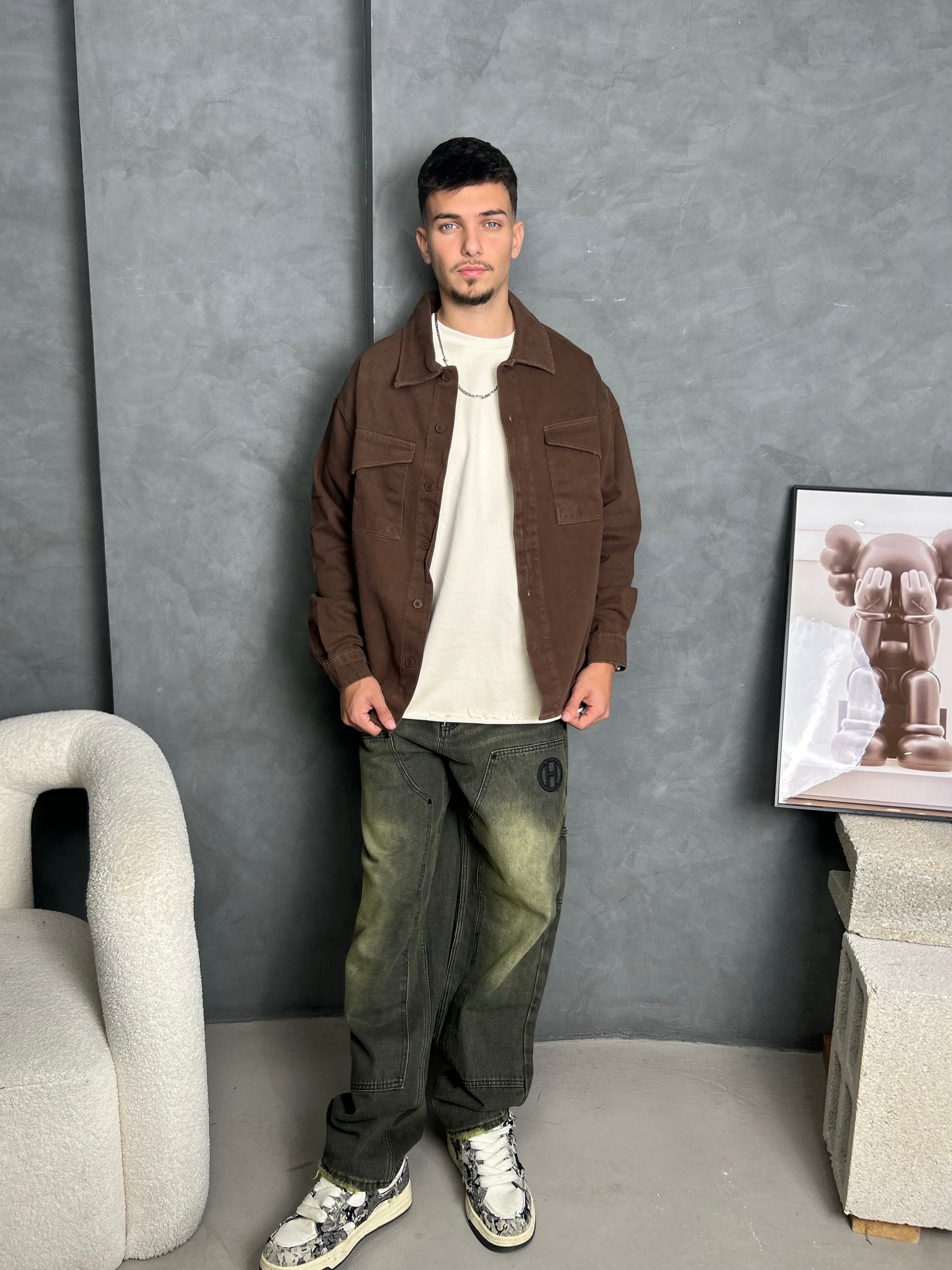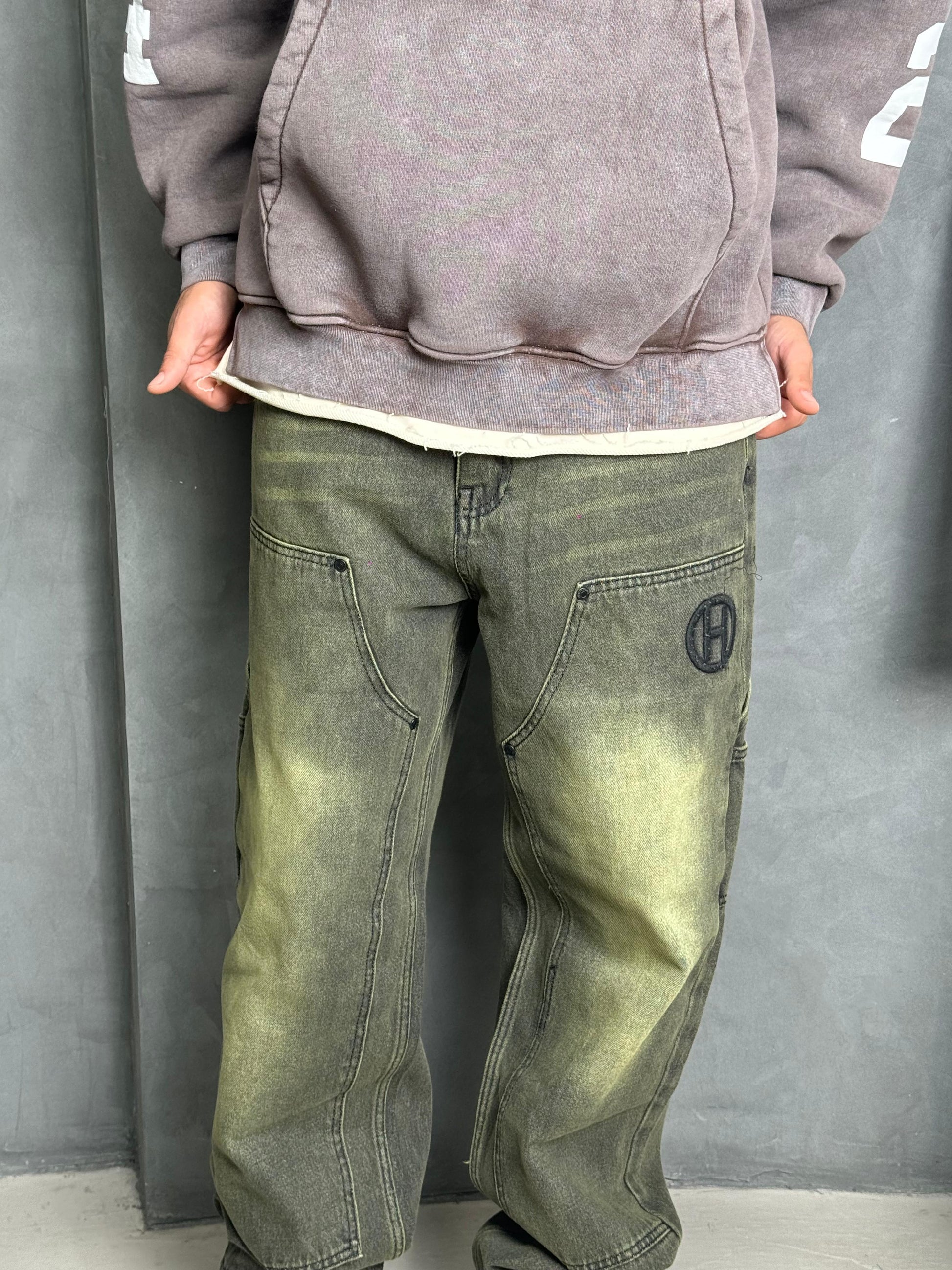 ג'ינס משופשף בגזרת אוברסייז בצבע ירוק